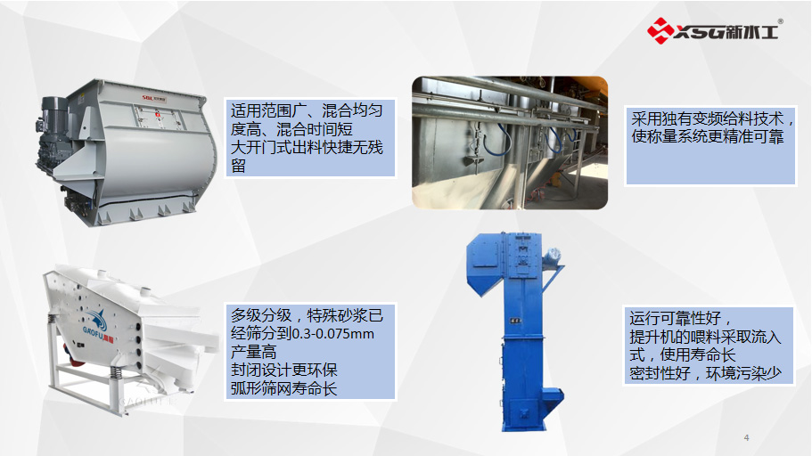 新水工自主研發的干混砂漿機械設備,可用于普通砂漿和特種砂漿的生產使用,主要有塔樓式,站立式,組合式、階梯式和實用式干混砂漿機械設備,同時還可以針對用戶的需求,進行特種砂漿生產線非標定制,建廠周期短,出效果快。